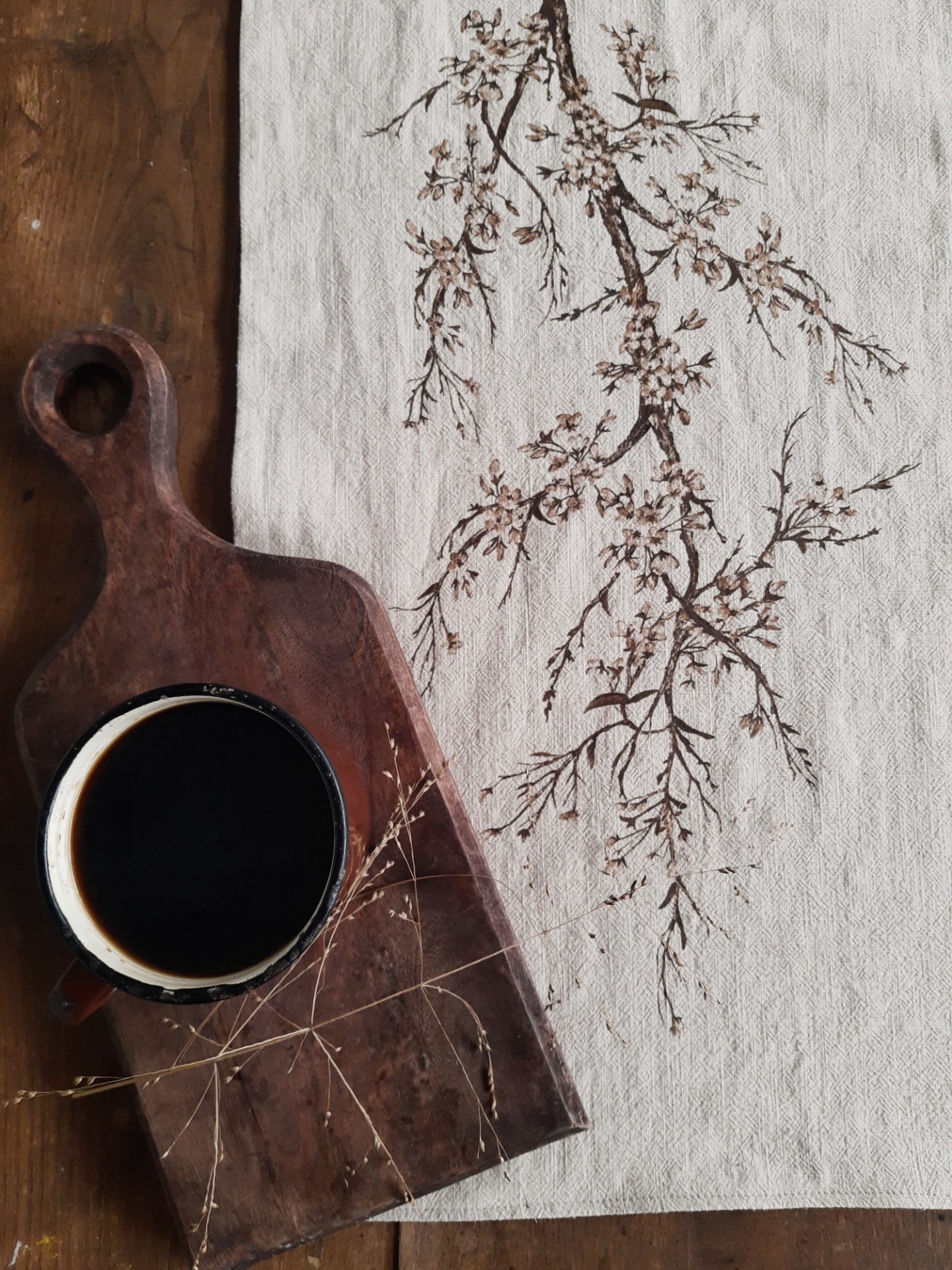 Ľanový obrúsok veniec trávy hnedý