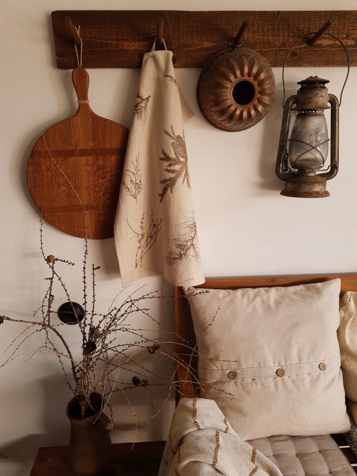 * Ľanová utierka je potlačená mojou maľbou zimných konárikov v hnedom prevedení.