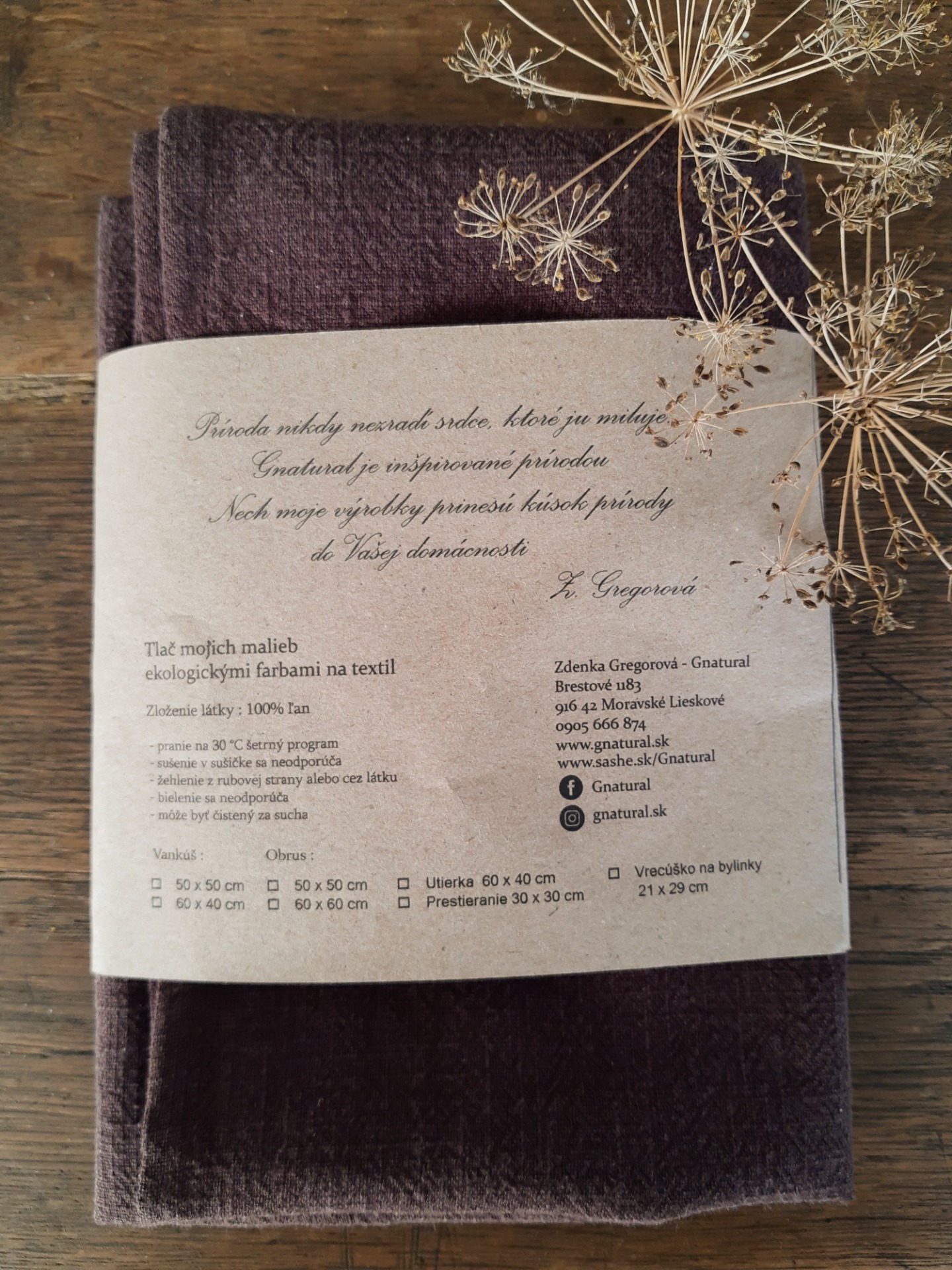 Údržba: môže sa prať v pračke na 30°C, sušenie v sušičke sa neodporúča, žehlenie z rubovej strany na program ľan.