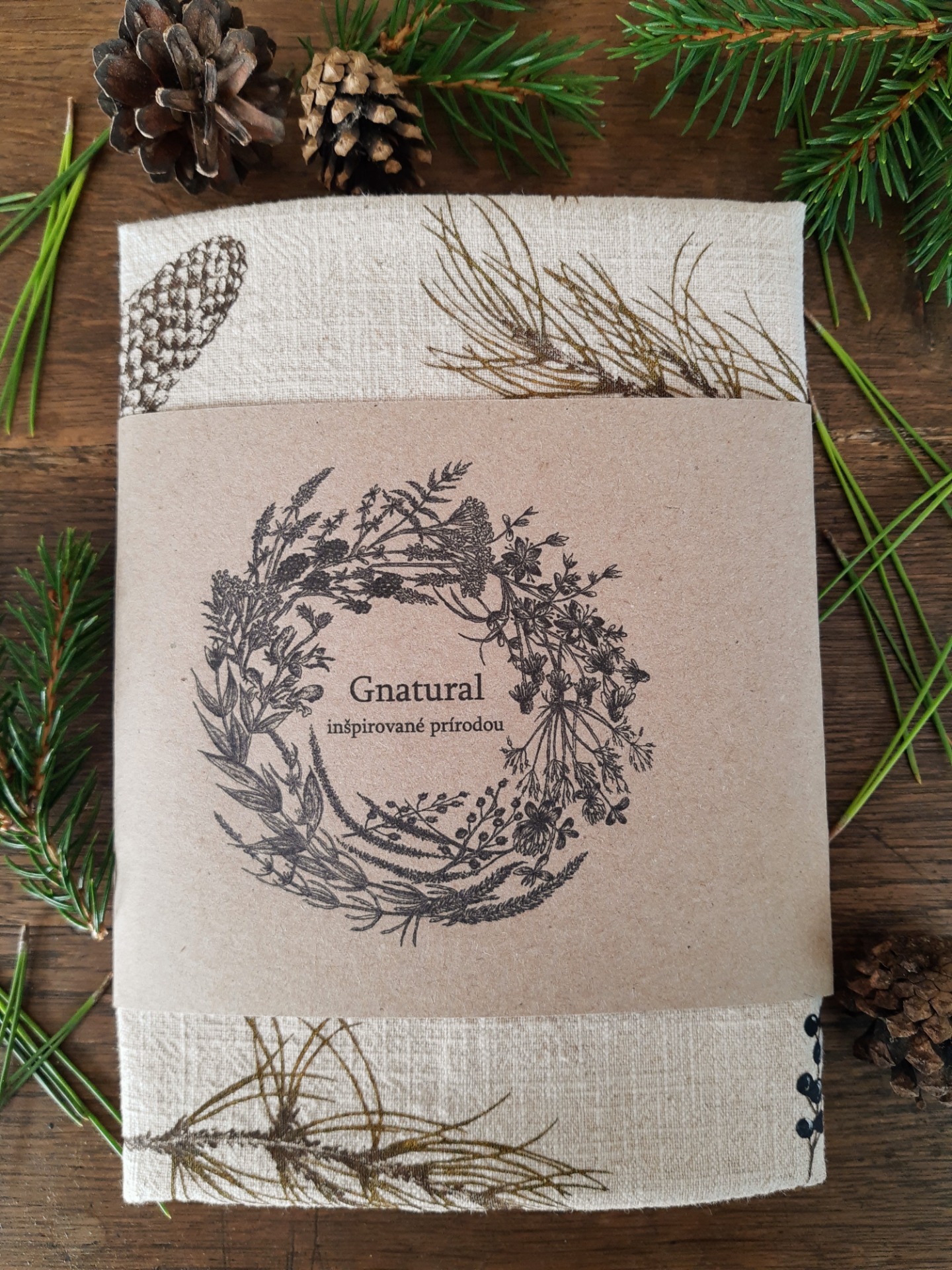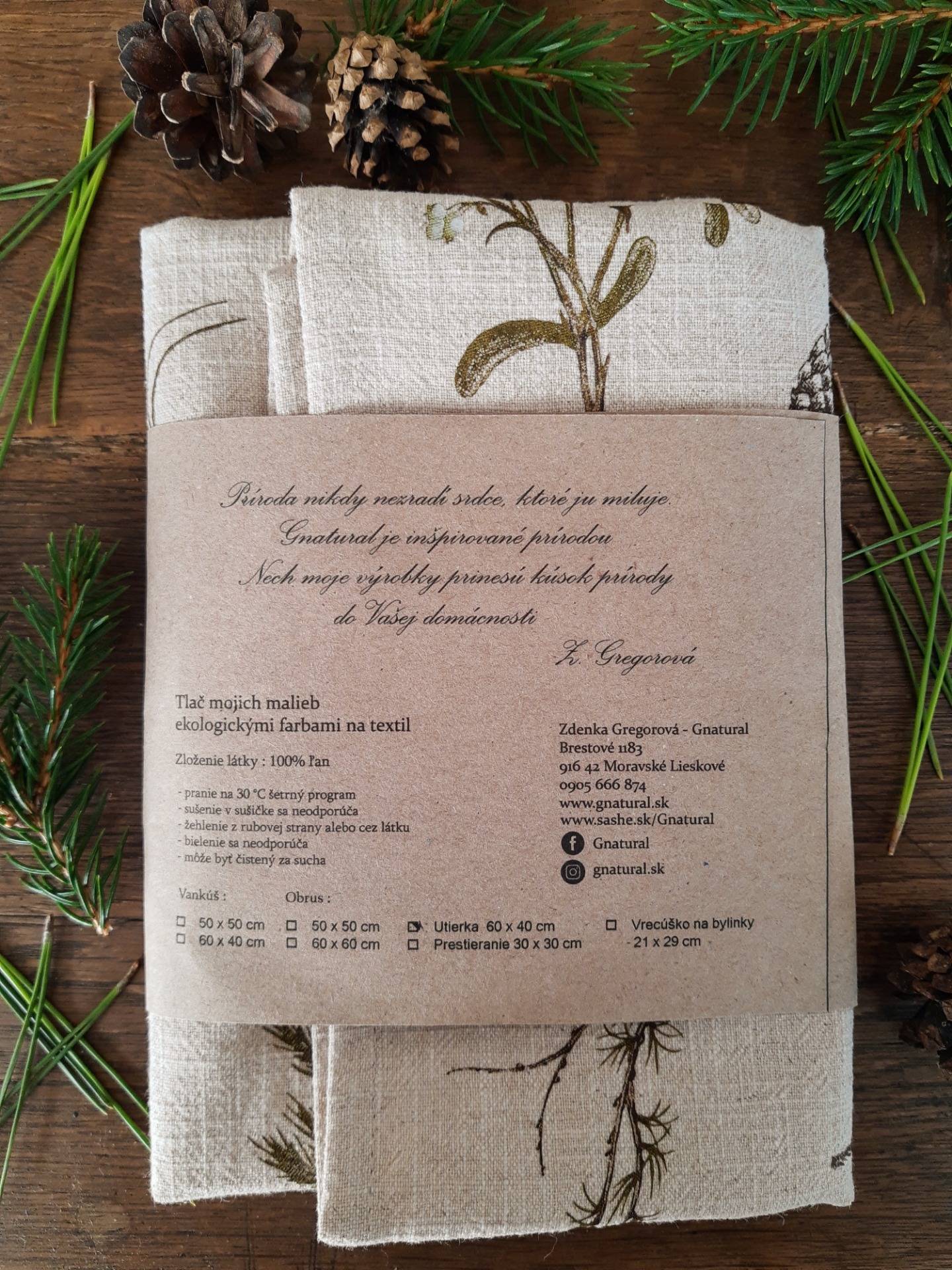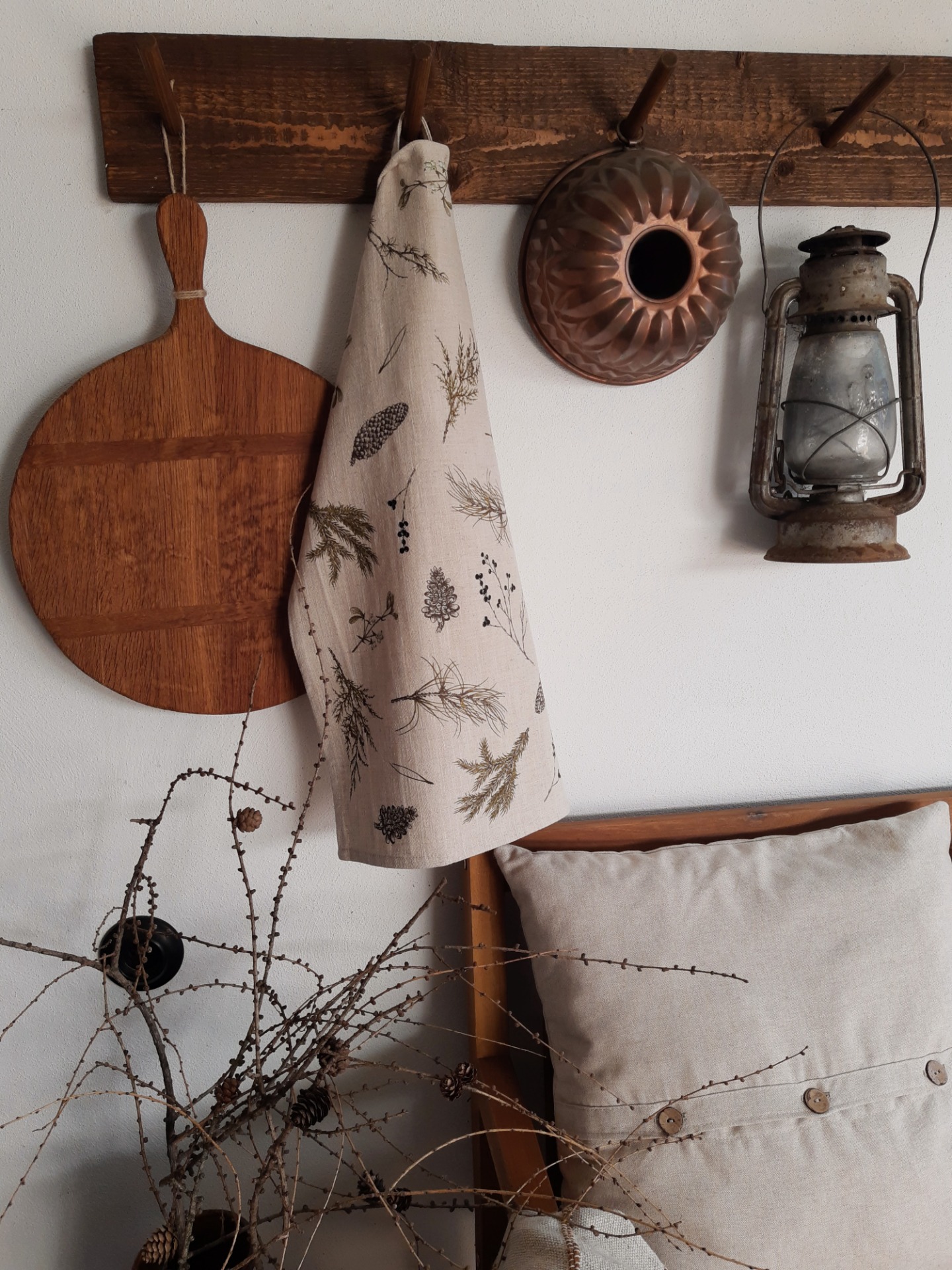 Ľanová utierka je potlačená mojou maľbou zimných konárikov.