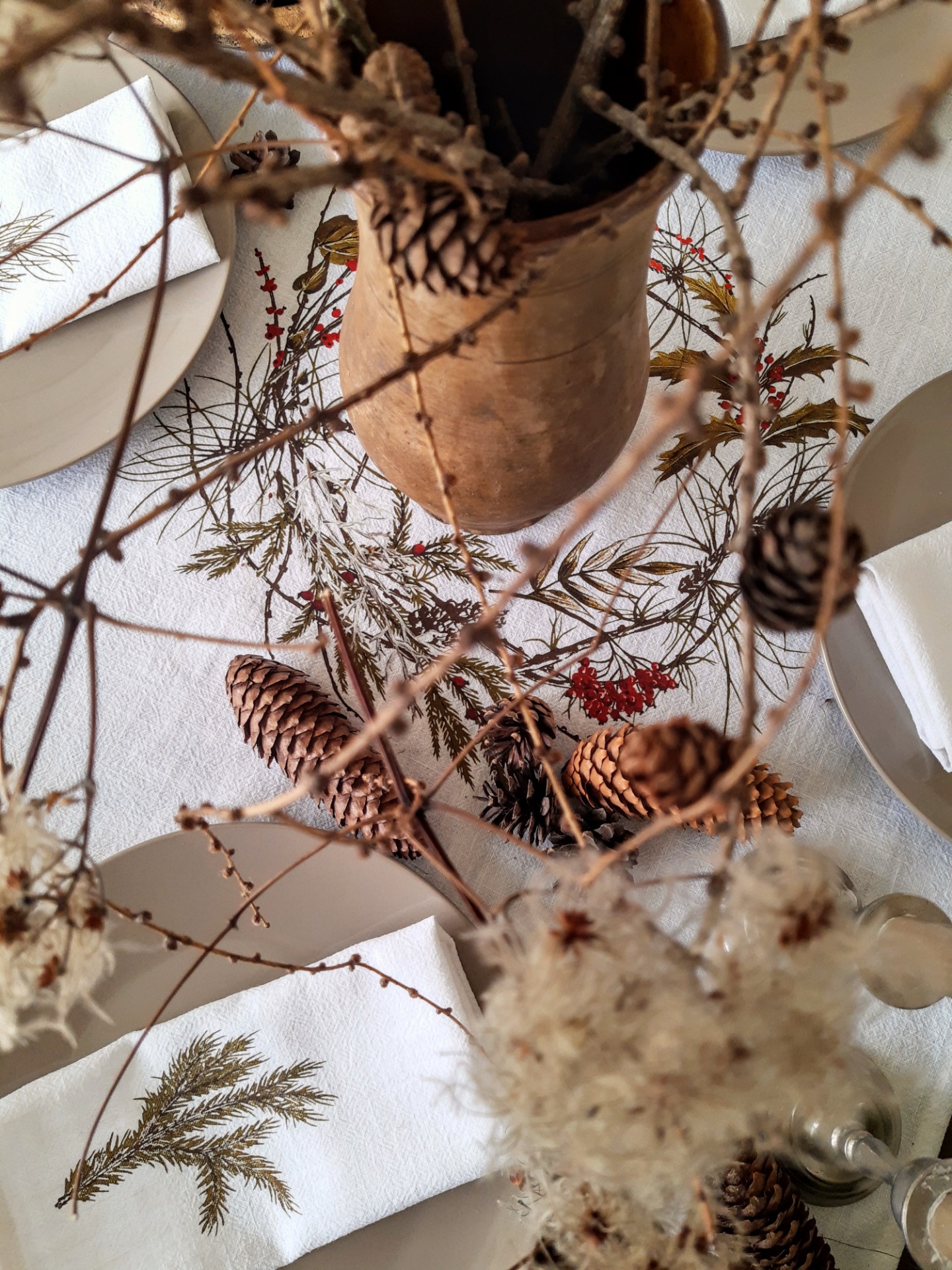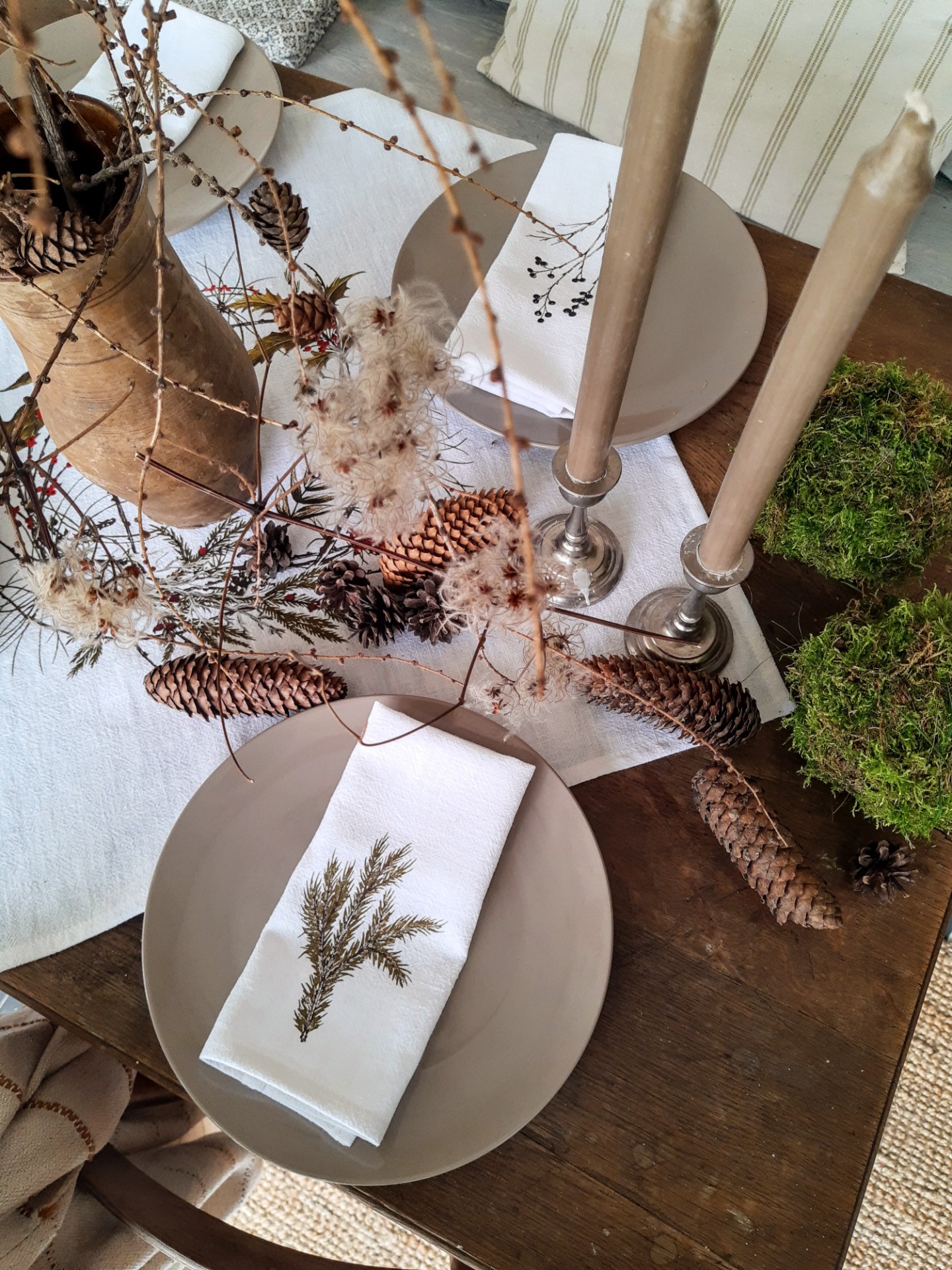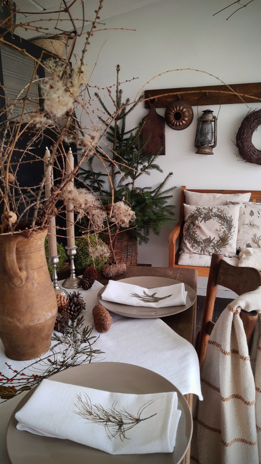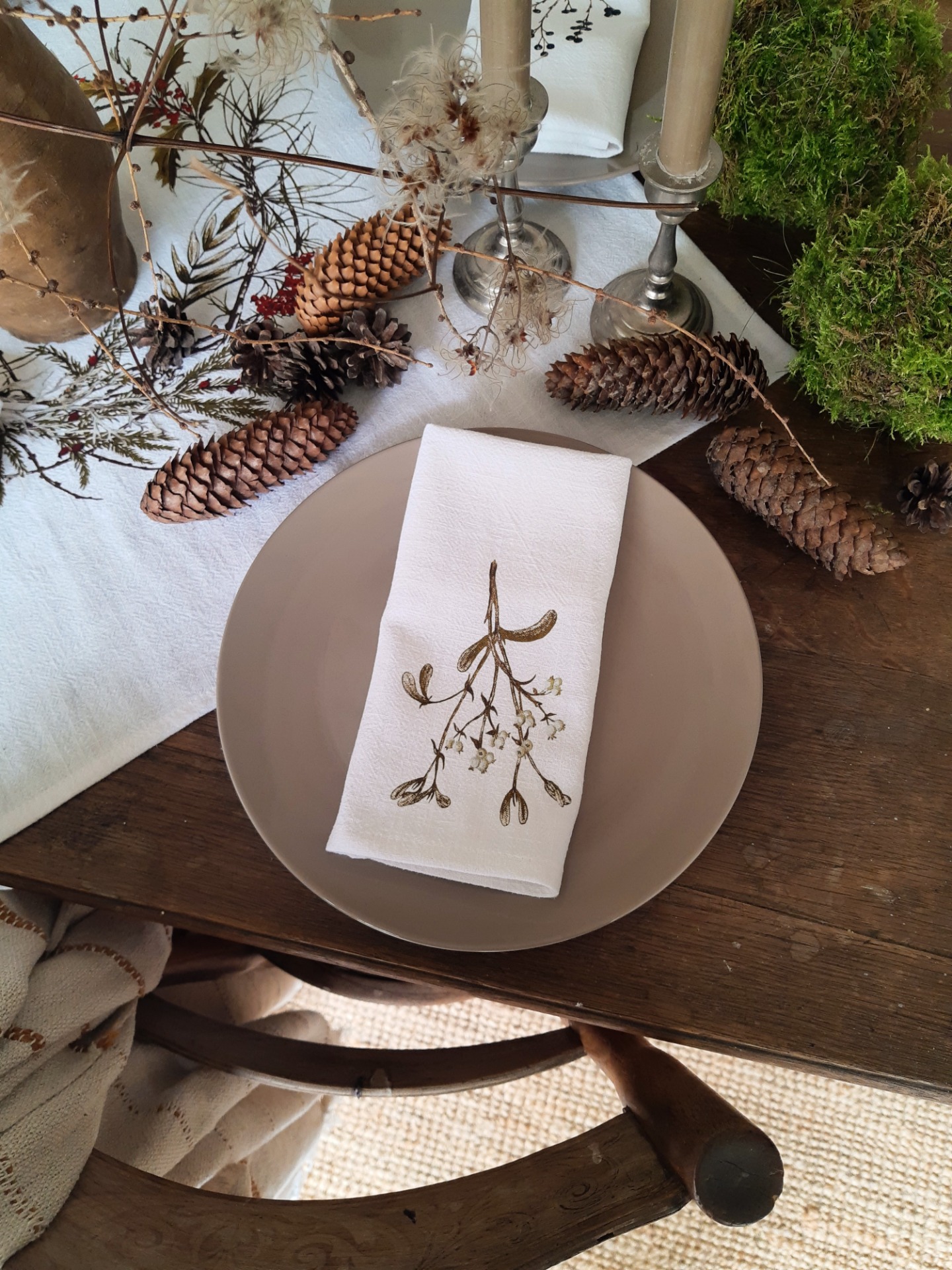 Toto ľanové prestieranie sme vytvorili na dokombinovanie k našim zimným obrusom a štólam z bieleho ľanu. Odtieň zelenej je prispôsobený tak, aby vám spolu krásne ladili.