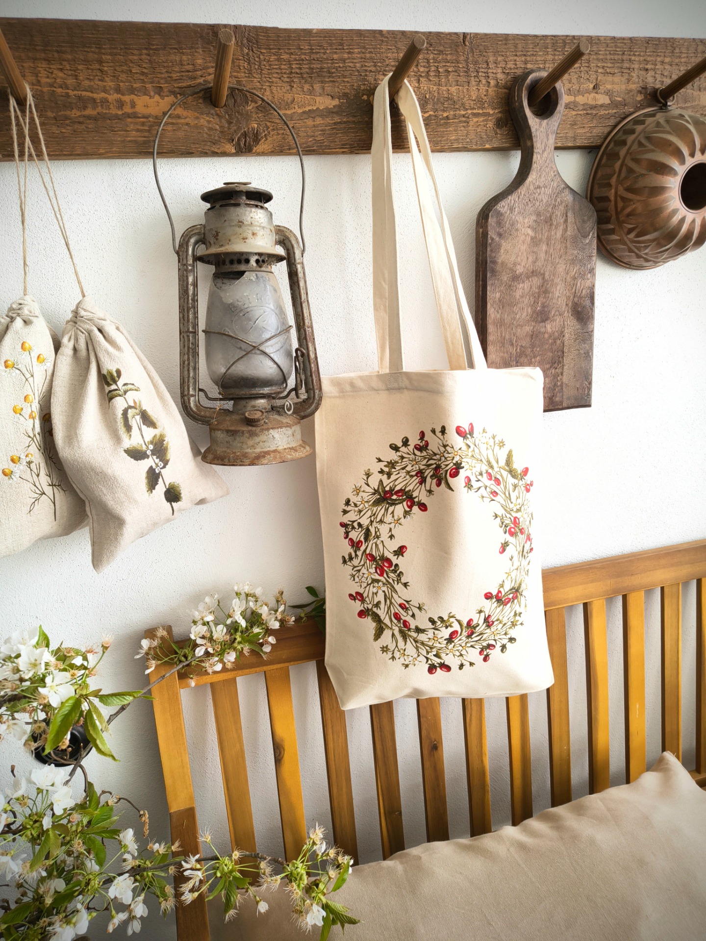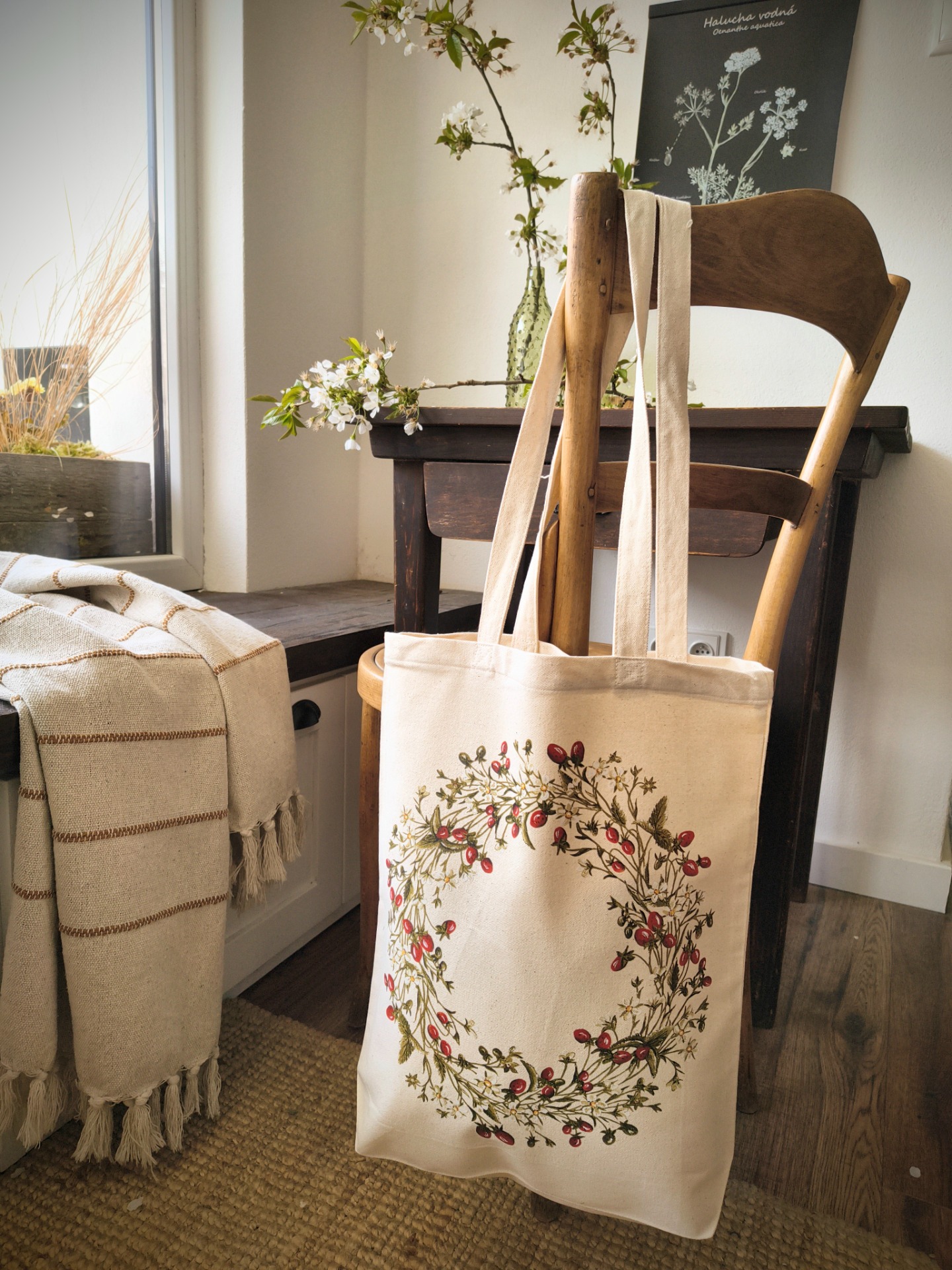 Autorská tlač mojej maľby tlačená našou tlačiarňou, certifikovanými ekologickými farbami. Pevná taška so zloženým dnom jutového vzhľadu režnej farby.
